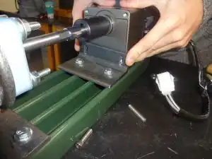 - (i.) Slide coupling-socket unit onto the motor shaft, coupling side first (the socket will accommodate the feed screw).