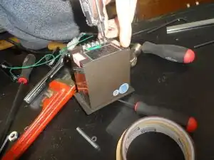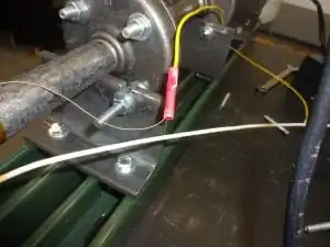 You may now connect recyclebot to a power source. (See Photo 39) As the heating element is warming up, pay attention to the temperature that is being registered by the temperature controller. If the temperature drops rather than rises, you will need to disconnect recyclebot from the power supply and switch the nichrome-attached copper wire connections (simply swap one connection for the other).