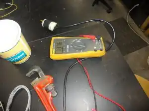- (iv.) Make contact with the remaining wire end and the other voltmeter prong.