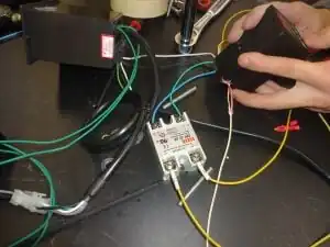 For this step, you will be preparing a length of wire that will connect the nichrome heating element to the solid state relay. (See Photo 37)