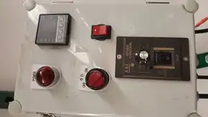 - Flip the red, circle switch on. You should see the temperature display screen turn on. The machine will start heating up to the temperature on the screen.