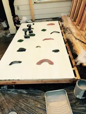 Paint the sheets of plywood with two coats of exterior paint using any color of choice.
