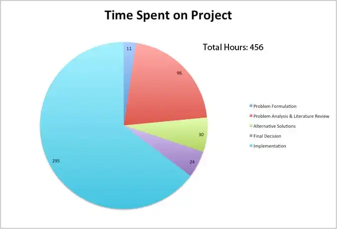 The pie chart below shows the amount of hours spent on each phase of the engineering design process.