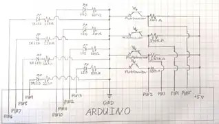 pinMode(sensorPin1, INPUT); pinMode(sensorPin2, INPUT); pinMode(sensorPin3, INPUT); pinMode(sensorPin4, INPUT); pinMode(ledPin1, OUTPUT); pinMode(ledPin2, OUTPUT); pinMode(ledPin3, OUTPUT); pinMode(ledPin4, OUTPUT); pinMode(irledPin9, OUTPUT); pinMode(irledPin8, OUTPUT); pinMode(irledPin7, OUTPUT); pinMode(irledPin6, OUTPUT);