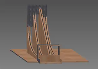 For the construction of the tracks one will need to cut all three sheets of plywood into 6 half inch 4'x4' sheets of plywood by cutting each of the 4'x8' sheets of plywood in half. One will then need to use a computer equipped with designing software such as AutoCAD or Autodesk inventor. On these programs one needs to replicate the dimensions of each 4'x4' sheet of plywood including the width. On these programs one will then sketch the desired pair of slopes similar to those of Figure 5-1 making sure that only one pair of slopes of a track is that of a cycloid. You should have a design similar to Figure 5-8. Once you have these drawn in a design program they will need to be exported as a DWG or a DXF file so that the shapes of the tracks can be cut out by a CNC machine. Once all these shapes are cut out and you have 4 pairs of identical quadrilaterals, you will want to join each of these pairs to another one with a half inch gap in-between them as shown in Figure 5-8. These four tracks will then be given walls that start after the 1.5 inch space center at the centerline. All four built tracks then will be constrained to a total width of 15". Within these bounds the tracks will be spaced evenly and then attached to the base which is another 4'x4' sheet of plywood. Wood glue and screws will need to be used as necessary. The end product of the tracks on the base will look like that of shown in Figure 5-8.
