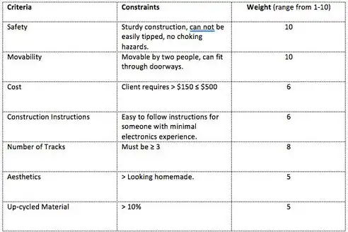 The initial track prototype, shown to the right, proved to be successful for use with balls and cars and was incorporated into the final design. The heights of the walls were slightly too tall in the prototype and were scaled down in the final design to allow balls to roll down the center gap without touching the walls.