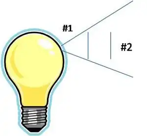 A candela is a measure of light intensity. It corresponds to the amount of light emitted over an angular span. This span is measured in steradian; this measure has no unit and quantifies three dimensional angles. 4π steradian is one sphere. An interesting aspect of this measure is that the candela of a light source is independent of how far away it is measured, since angle is not affected by horizontal distance.[3] Figure 1 demonstrates the effect of distance on candela, the candela measured at points 1 and 2 is the same.