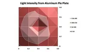 The setup and resulting light intensity of the aluminum pie plate are shown in figures 13 and 14 respectively.