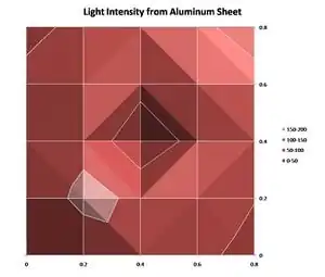 The setup and resulting light intensity of the large aluminum sheet are shown in figures 15 and 16 respectively.