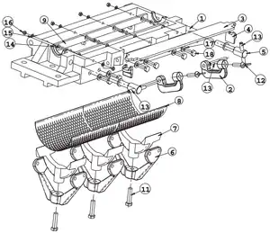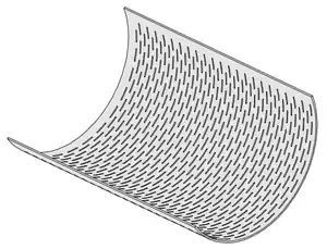 (Rep.7, see Appendix 1, drawing 02-007) The sieve support has as function to secure the sieve, and to stick it against the maintenance bars which assure its fixation to the other side. Its curvature also allows the sieve to retain its cylindrical shape.