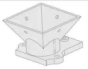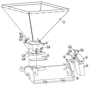 (Rep.3, see Appendix 1, drawing 04-003) This piece serves as a support for the hopper. It also permits to control the input flow via the closing feeding sheet (Rep.7 see Appendix 1, drawing 04-007). This piece is molded in cast iron and should has no particular mechanical feature.