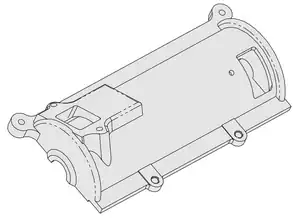 (Rep.2, see Appendix 1, drawing 04-002) This piece is the "lid" of the sheller. It also permits to provide maintaintenance to the feeding and release devices. This piece is molded in cast iron and has no particular mechanical features.