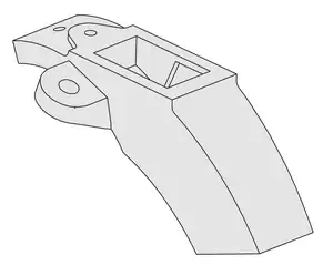 (Rep.4, see Appendix 1, drawing 02-004) This part provides the link between the knife and adjustment screw. One could imagine of removing this part by putting the knife directly in contact with the adjustment screw. But the knife support provides an important feature: like the clamp closure, it is a rupture part. In the event of a severe impact in the mechanism, the support brakes, which permits the release of the knife, and avoids in most cases to breaking of parts that are more difficult or expensive to replace. This part is therefore made in cast iron or a material which is comparable or inferior in durability.