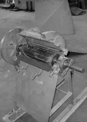 This model of huller has many parts made in a foundry. Unfortunately, many workshops do not posses this technology. In this case, the best solution is to locally outsource these parts. If this solution also not possible, all these parts can be ordered from the Belgian A.S.B.L. Codéart 2. A version of this machine made solely from mechanical welded parts is currently being researched. We warn the reader about the apparent simplicity of the huller: its manufacturing demands hefty experience and mechanical know-how.