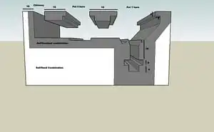 - The firewood chamber need to be set now. This will be below the position of the first pot (see diagram). Measure this position, it will be approximately 15cm + half the diameter of the first (largest) pot.
