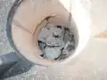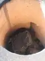 Cover with lid, and remove rocks from the bottom while supporting the drum with the large stick. Seal the bottom with sand or dirt.