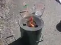 Place drum on 3 rocks so air flows through the bottom, light from the bottom.