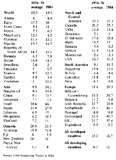 Production - world output increased by 16 per cent over the period 1961-70, but fluctuated considerably during the period 1967-70, and although production increased there was an overall fall in area harvested during the decade 1974-84 (Table 2). The developed countries continue to produce the majority of the world's potatoes but the proportion contributed by developing countries increased from about 14 per cent in 1969-71 to 30 per cent in 1984.