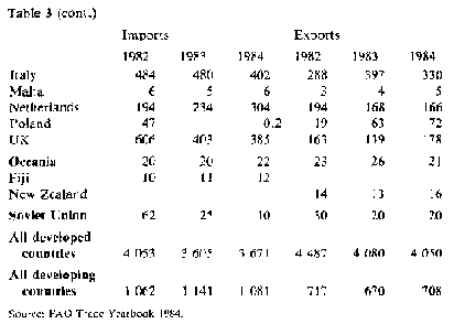 Table 3: Potato - Imports to and exports from selected countries ('000 t) (cont.)