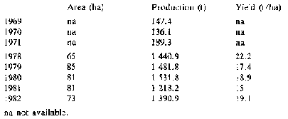 ANON. 1982. Statistics of Hawaiian Agriculture 1982. Hawaii Agricultural Reporting Service, 48, 54, Honolulu, Hawaii.