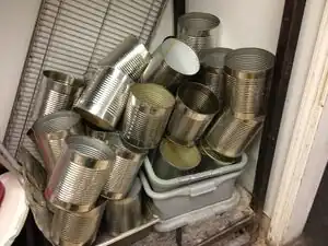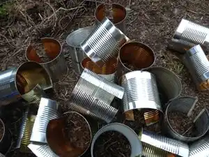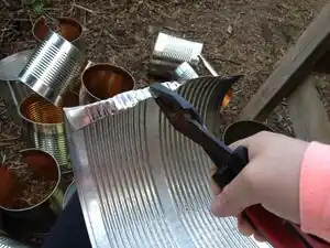 We then used pliers to bend the edges of the cans so they were less dangerous to work with.
