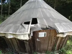 The Yurt has excellent aesthetics and appears solid and still standing. The roof has a few areas of rust on it, but for the environment it is in it is a very small amount of rust. The roof could be refurnished the rust deterrent used has begun to where off, when talking with the employees of CCAT, it was mentioned that they were planning on going over the roof with the rust deterrent in the near future if time permitted. The bottle lighting system is working wonderfully there is variation in the levels of the liquid, but none of the bottles appeared to be wanting of a refill. The small portion of bleach added to the bottles works well to keep the algae and mold away as none was visible while looking at them. There are no noticeable leaks in the roof at this time. The solar lights in the yurt are working very nicely and light up the room well. The battery was replaced earlier this year, in July. The replacement was a used battery, but it is working well it just needs to be maintained occasionally. The inverter in the yurt is out completely and needs to be repaired or replaced. The lights run on direct currents and the inverter is used to convert the direct currents to an alternating current, so it does not affect the lighting system, but it would be good to be repaired. A few of the employees at CCAT mentioned that it would be nicer to have a deeper cycled battery for the solar system in place. Overall, the yurt is still standing, the roof has no major leaks and the solar system is hooked up and the lighting works. The roof could be re-coated with some rust resistant overlay, and the invertor needs to be repaired or replaced.