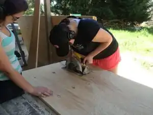 During the first steps of our project our potential roof materials included racing slicks and aluminum cans in addition to tin cans. The racing slicks were very time consuming to cut and could potentially leach with the rainwater. The roof needed to be compatible for a rainwater catchment system, therefore runoff from the roof could not be potentially contaminated. After calculating the surface area of the roof, aluminum cans were determined to be too time consuming. The prototype we built, with the first 2 tin cans we collected, were cut in half and screwed into a piece of plywood. This was or first positive result so we stuck with it and began collecting size 10 cans. We figured we were going to need a lot of them and noted it would be more efficient to cut each can once.