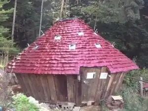 We wanted there to be very little need for maintenance of the yurt roof. Every seven years new water will need to be put into the bottles in the roof. The bottles slip out of the top of the flashings. If a shingle breaks off, read above process on how to construct a new one and there is paint left in the CCAT shed. Use a staple gun to attach to the roof.