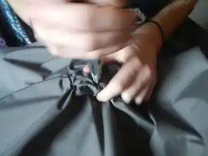 After all the clasps are placed and tightened, the fabric hanging off the edge needs to be cut away. Be sure to leave at least more than a half inch beside the 3D parts.