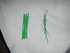 Strip the twist ties of the material around the metal. This will make it so they will be able to fit though the 3D parts hole.