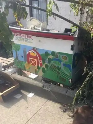 Talked to Katie about the Free Food Kiosk. She says it is still actively being used by community members. Back doors haven't been used as much, when food is loaded in by Sanctuary team they are loading everything in from the front doors. Kiosk is left on locked during the day, folks are free to open kiosk and take food or leave food when kiosk is unlocked. Mostly canned foods being donated, would like more fresh foods. People have been dropping off clothes, old art supplies and their garbage rather than food. Katie mentioned adding sign that says "No clothes donations. only food" sign for folks to be more careful with their deposits, she also mentioned it would be nice to repaint some parts of the box but other than those 2 minor things it is working great.