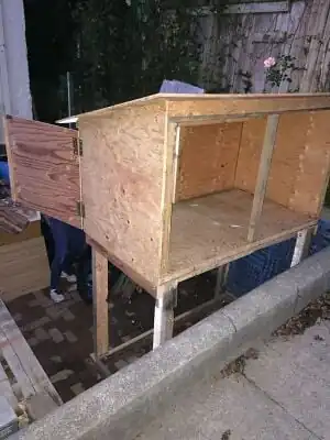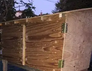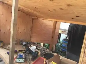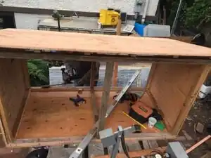 screw on 4 pieces of plywood to the left, right, and bottom sides of the frame creating the two outer walls of the kiosk and the bottom piece. The roof will be a larger piece in order to protect the kiosk from weathering.