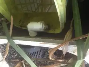 PLANTER BUCKET IN TUB 2: The pipe connects to an ABS elbow that allows the pipe to go towards the bottom of the tub. This planter bucket is similar to the tub ones planter bucket.