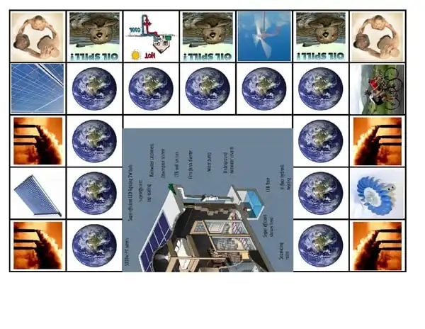 Cut out the deeds and penalty pollution squares and cut the big pollution image into a puzzle.
