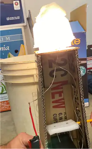 | Light does not turn on | Unplug the power supply cord and gently twist the nails (that act as the probes) in a downward motion until the heads of the nails are fitting snugly against probe block. Plug the power supply cord back in. If issue continues, first make sure the other end of the power supply cord is plugged into a working wall outlet. If there are still issues, check the solution the electricity is going through, it may not be conductive enough. Lastly, if it still does not turn on, try using another lightbulb. |