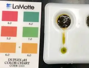 Once the appropriate solution is chosen the color that results from the second solution test distinguishes the pH.