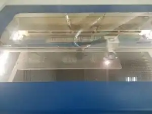 Center the tile in the laser in the correct location and adjust focus settings for the laser engraver (intensity, speed, and material thickness.)
