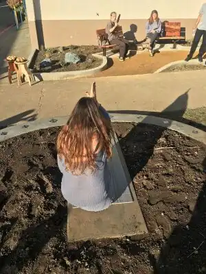 Additionally, making a sundial that was elevated off of the ground creates a platform, with the flexible usage as a bench, raised planter bed, and creative space. Educational components of the design are minimalist in nature, as represented in our design. By creating a strongly curved, arching curb of numbers surrounding a monolithic platform, the shape of the space creates a place that is encouraging to students to fill. Once a student steps onto the platform and observes their shadow highlighting the current time, it could have the effect of reinforcing their connection with the revolution of the earth around the sun and how it relates to the passage of time.