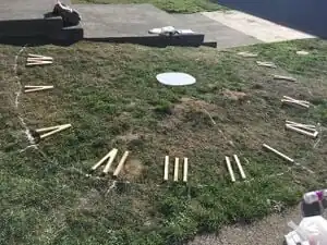 We measured out the height and width of the the sundial and created a square with string and stakes.