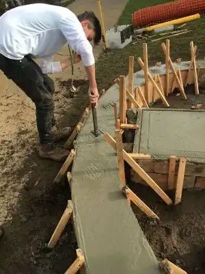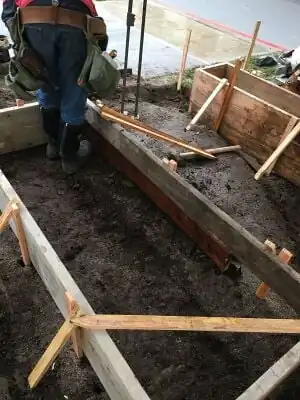 We repeatedly checked the levels of the forms and hammered in the stakes to level the forms if inaccurate.