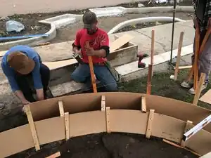 This spacer device was created in order to have a one foot width while bending the masonite sheets.
