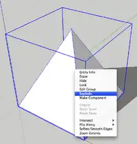 To work efficiently, it is important that you organize the drawing on a good manner. This makes it easier to select, copy, move, ... things. SketchUp contains 3 tools to organise your drawings: groups (GROUP), components (COMPONENT) and layers (LAYER). For now we limit ourselves to the groups. The other aids will be discussed later.