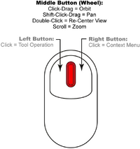Because navigation is so essential, it is possible to activate all these tools on a faster method. This is however only possible if you work with a 3-button mouse ! All navigation tools can be activated using the third (or middle) mouse button.