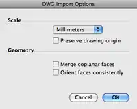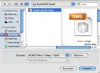 Remember to indicate with which units you drew your AutoCAD-drawing using the "Options"-button (the example drawing was drawn in millimeters). That way you do not need to tamper on the scale later-on.