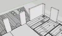 Now that you imported the picture, and now that you know that SketchUp handles the imported drawing so smoothly, you can begin to redraw the AutoCAD-lines (with the LINE-tool), so that surfaces are created which you can then turn into volumes (with the PUSH/PULL-tool).