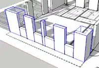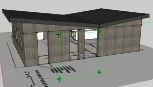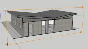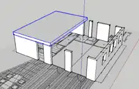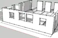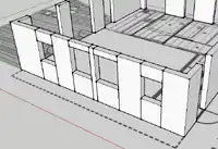Now the underlayer is imported and scaled, we can base ourselves upon it to draw the walls of the house. Use herefore the LINE-tool, and also take SketchUp's inference into account.
