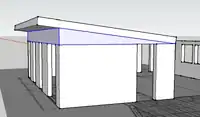 - PUSH/PULL: this triangle is stretched over the entire width of the house using PUSH/PULL.