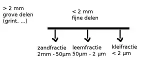 The solid constituents of the soil are more than 90% mineral particles of different sizes, ranging from a pebble to a microscopic particle (clay). The particles are classified according to their particle sizes (called fractions). We use the micron as a measuring unit. A micron is 0,001 mm or 1/1000th of a mm and is indicated by the Greek letter µ (pronounced mu). In the soil, one can distinguish the following fractions using a sieve (soil sieve):