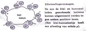 Large quantities of organic waste stream on top of and into the soil, such as plant remains (leaves, roots, stubbles, ...), animal waste (feces). In addition, the farmer also introduces tons of organic manure (stable manure, compost, ...) into the soil. After some time we retrieve nothing of these tons of organic substances, it vanished, consumed by the action of soil organisms (worms) and soil microorganisms (fungi and bacteria). These organisms feed on organic waste that they break it down into water, carbon dioxide (CO2) and nutrients. It leaves only a residual product that cannot decompose further; this is called humus. The conversion process is called the humufication process. 1000 kg of manure leaves only a few grams of humus. Humus is a constantly changing mixture of organic compounds in various stages of decomposition. We distinguish between non-stable or nutrition humus which serves as food for microorganisms (the primary conversion) and stable humus with can be little or no further converted (final conversion). The humification is done by breathing or aerobic bacteria. When the soil contains too little air (due to too much water), the breathing bacteria can not develop and the plant waste is little converted. Peat is then formed (therefore do not introduce stable manure too deep into the soil). Besides air, these bacteria also require nitrogen for their nutrition. Organic material that contains too little nitrogen require the adding of nitrogen for a quick and smooth conversion. The C/N ratio determines the quality of the humus. Organic material with a C/N ratio lower than 30/1 will humificate smoothly. For the introduction of green manure (leguminous plants), the C/N ratio is 15-20/1, so the humus conversion poses no problem. With straw the C/N ratio is 80/1, here the humification requires the adding of nitrogen for a smooth humification process, if this is not done the bacteria will fetch all the required nitrogen from the surrounding soil and a nitrogen-depression could occur. Humus is a very fine colloidal substance = a substance whose molecules are too large to dissolve, but small enough to float in water. Due to the colloidal properties, humus is sticky. With soil analysis we determine not the humus but the carbon content from which we calculate the humus content.