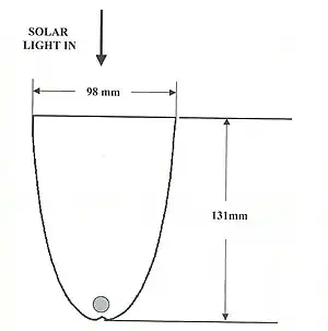 Solar cookers are solar concentrators where precision and efficiency has been sacrificed for ease of construction and use of readily available materials. Inexact geometries that still allow for water boiling or bread baking temperatures are used. Some calculations relevant to the design of solar cookers with paraboloidal reflectors can be found on the Sun related calculations page.